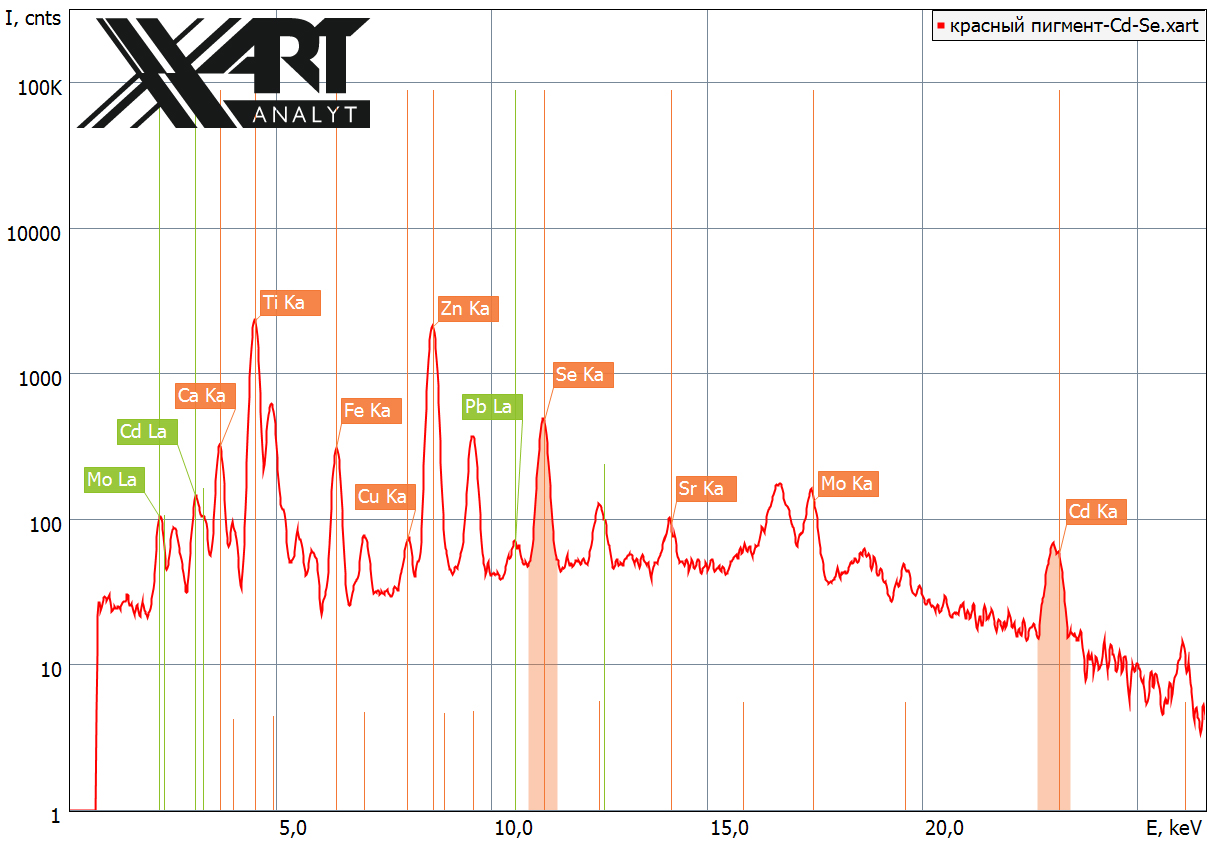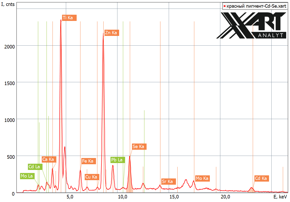 Во втором – красный пигмент обусловлен наличием кадмия и