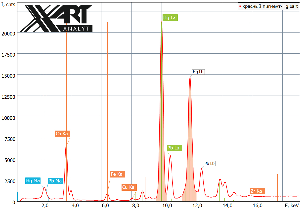 случае показан спектр пигмента, полученного на основе ртутных