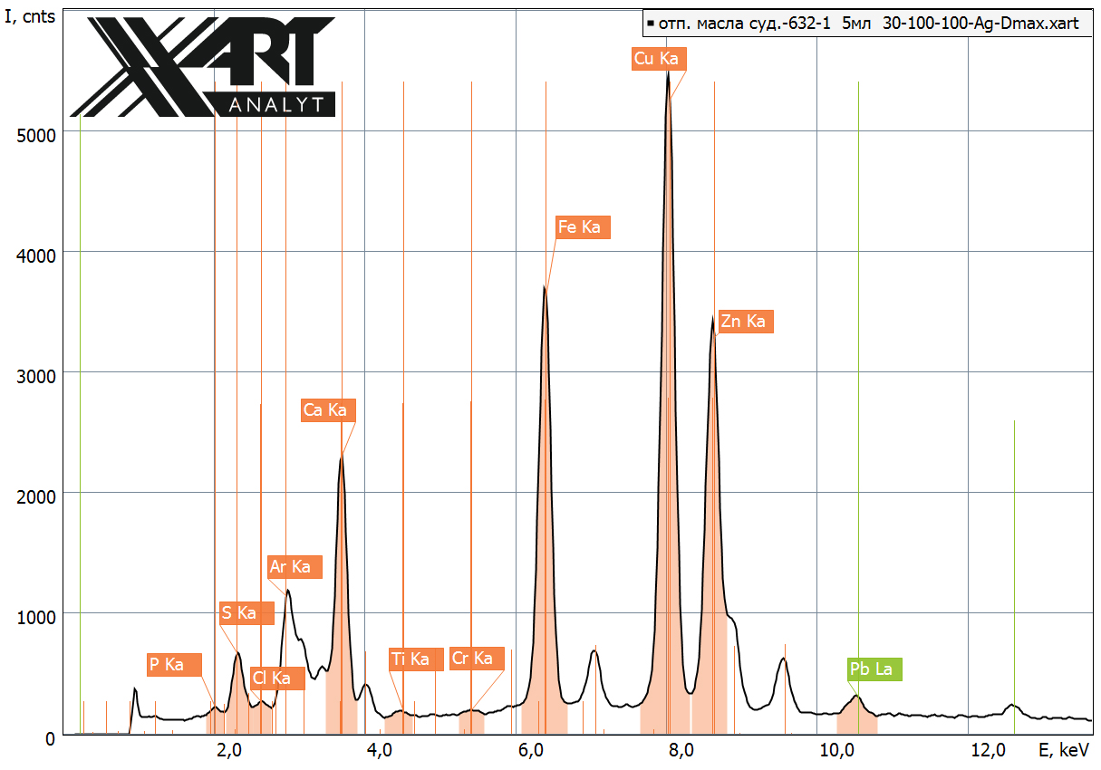 Спектр ХРИ образца отработанного масла из судового двигателя.