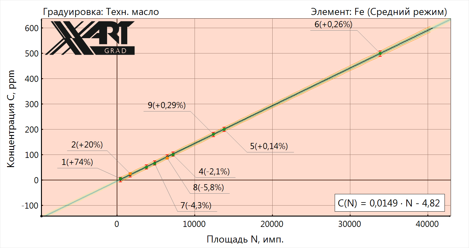 На градуировочных графиках показана возможность определения содержания примесей в нефтепродуктах в широком диапазоне концентраций.